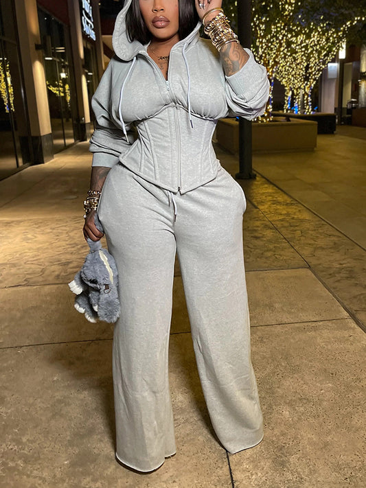 Corset Hoodie Jacket & Wide Pants Set