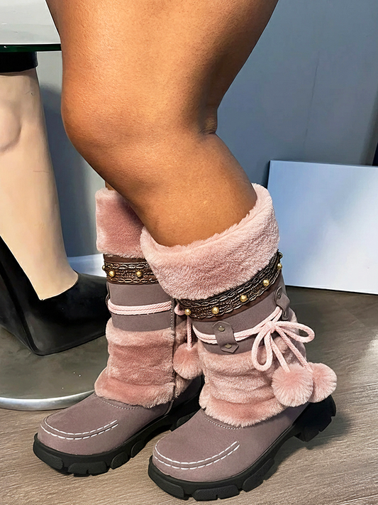 Suede Pom-Pom Snow Boots