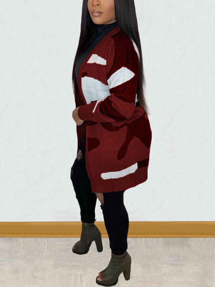 Camouflage Print Sweater Cardigan