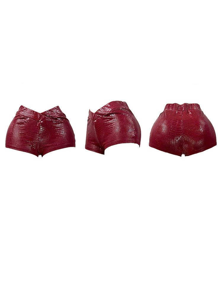 Faux Fur Trim Leather Jacket & Croc-Embossed Pants